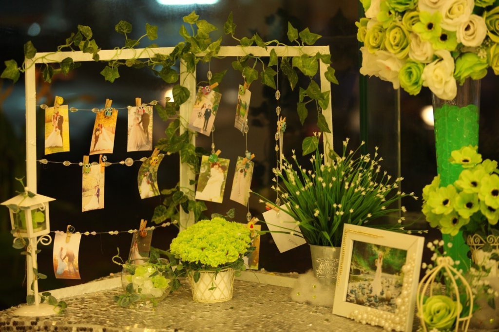 Nhà hàng tiệc cưới Aqua Palace cũng chính là khung cảnh lý tưởng để bạn có những shoot ảnh cực chất với phông nền xanh tươi lung linh, góp thêm vào bộ sưu tập ảnh cưới của bạn một chút hoa cỏ thiên nhiên tươi mới.