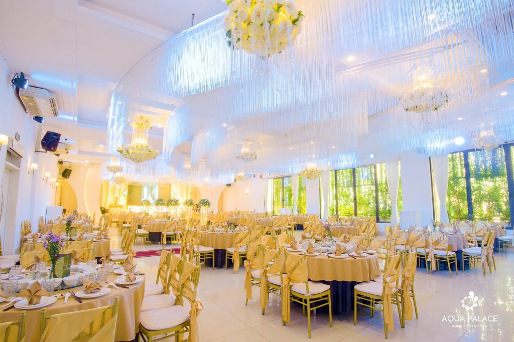 Không chỉ cung cấp các dịch vụ phục vụ chất lượng tốt nhất cho lễ cưới, Aqua Palace mang đến đa dạng lựa chọn phong cách trang trí cho buổi tiệc mừng “hạnh phúc trăm năm” của bạn. Không những giữ được yếu tố văn hóa, truyền thống và không khí linh thiêng của buổi tiệc, Aqua Palace đáp ứng sở thích và thói quen của khách hàng để mang đến lễ cưới trọn vẹn.