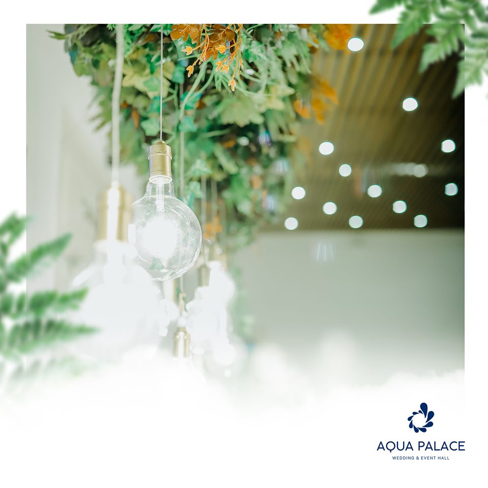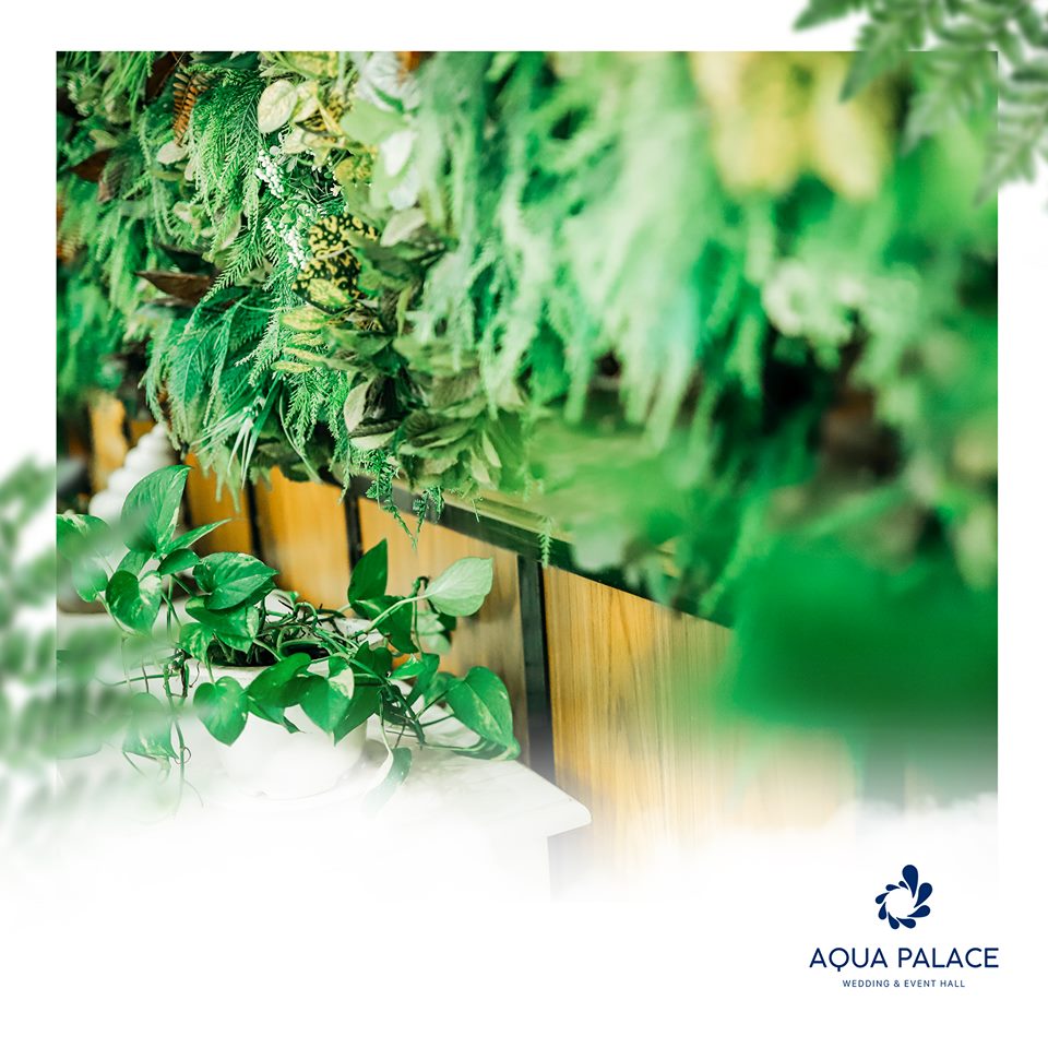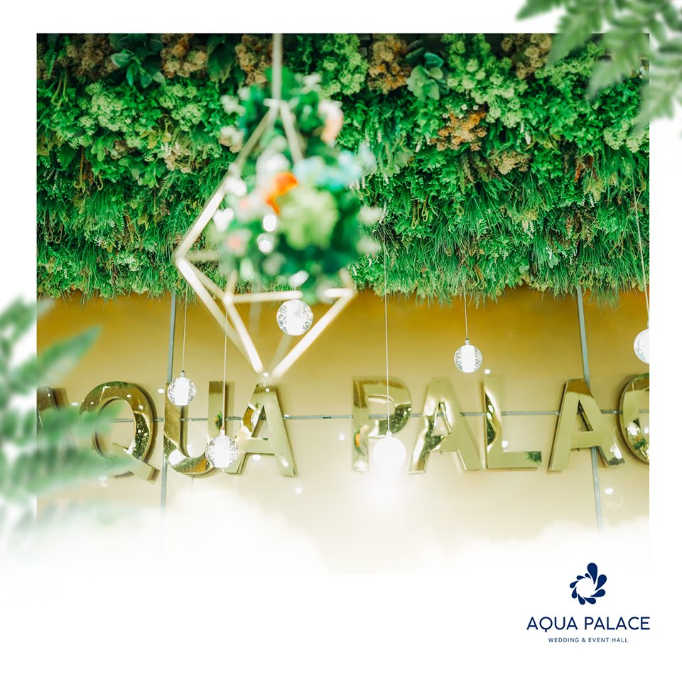 Lấy cảm hứng từ các tiệc cưới ngoài trời, tiệc cưới sân vườn – một trong những xu hướng đám cưới tại các nước châu  Âu, châu Mỹ và Nhật Bản, để thay đổi toàn bộ diện mạo Aqua Palace Sang trọng nhưng không quá cứng nhắc với những mảng kim loại chói sáng, sự sang trọng đến từ một không gian xanh mát của cây cỏ thiên nhiên.