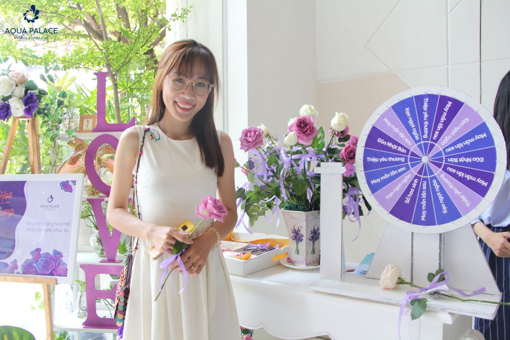 Ngoài ra, một ‘’studio mini’’ đã có mặt tại Aqua Palace để tất cả khách mời thoải mái check in cùng khung hình và những biểu tượng dễ thương. Vừa được nhận quà lại vừa được nhận hình, những khách mời dường như đều không thể bỏ qua Sạp hoa yêu thương của Aqua Palace.