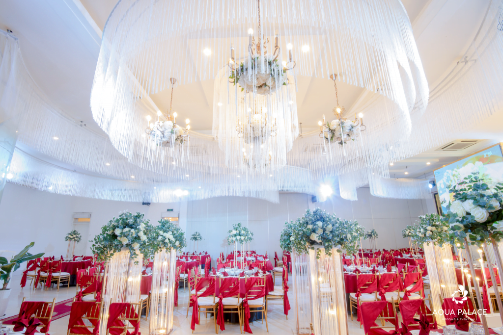 Với sắc màu và ý nghĩa của cái tên sảnh Ruby tại nhà hàng tiệc cưới Aqua Palace sẽ phần nào nói lên sắc riêng trong tình yêu của hai bạn.
