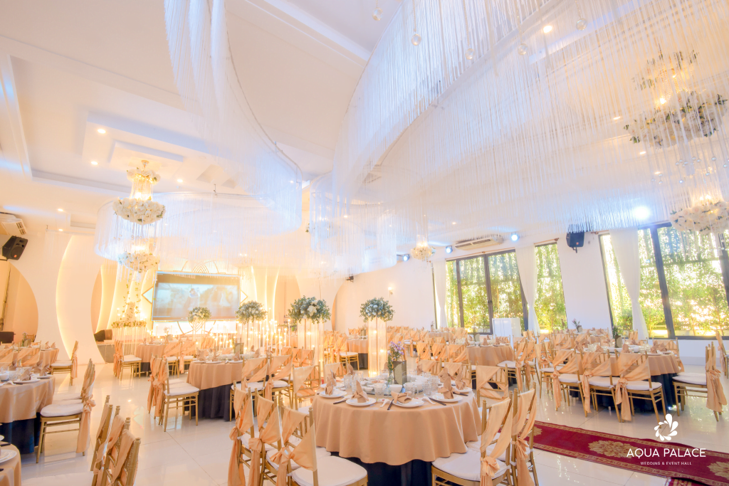 Hiện tại Trung tâm Hội nghị Tiệc cưới Aqua Palace có 4 sảnh tiệc đẹp và 1 sảnh tiệc đặc biệt. Mỗi sảnh với mỗi màu sắc đại diện riêng, các cặp cô dâu – chú rể sẽ có đa dạng sự lựa chọn tông màu chủ đạo cho tiệc cưới của mình.