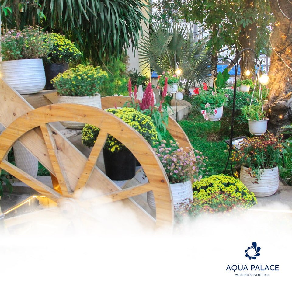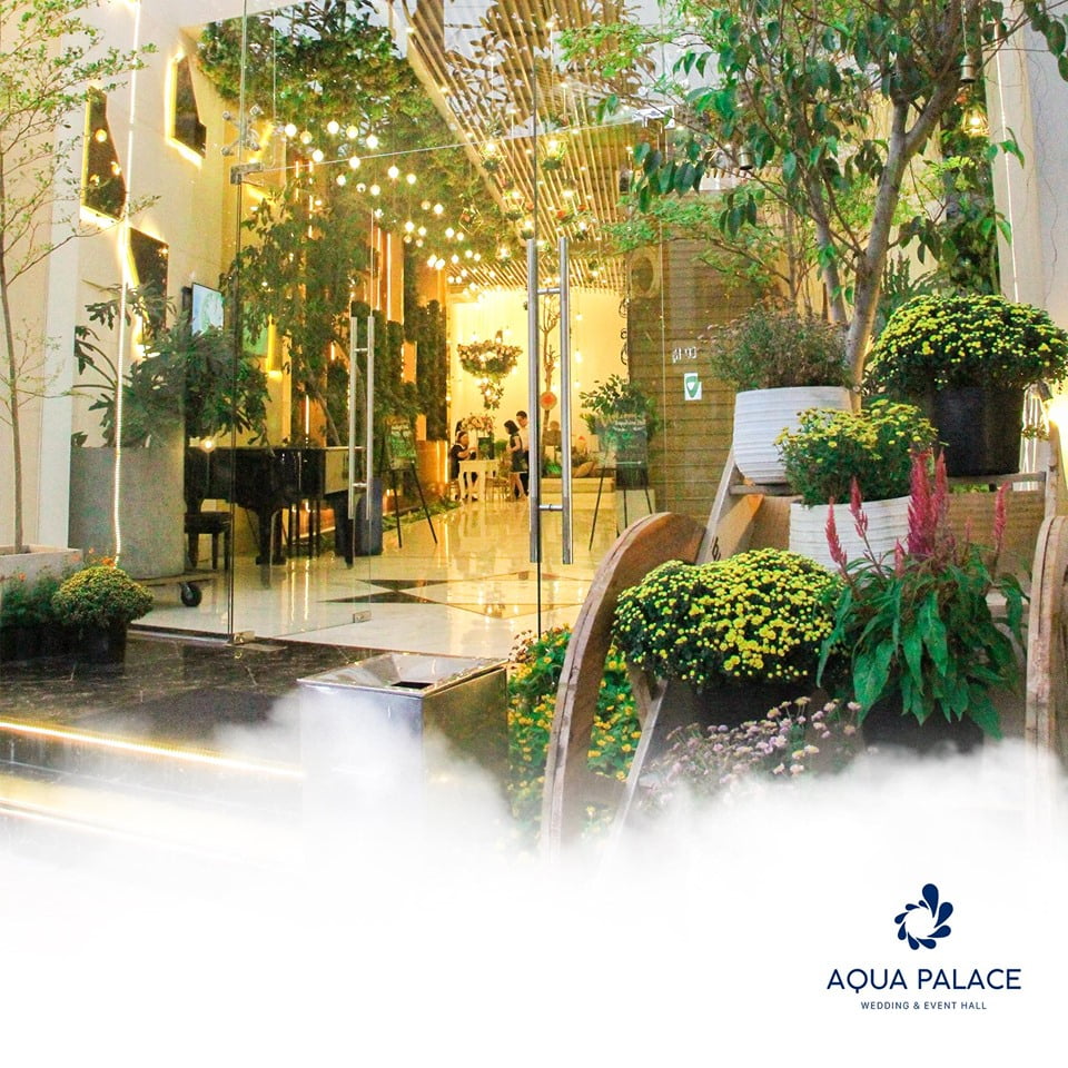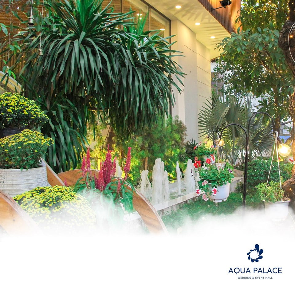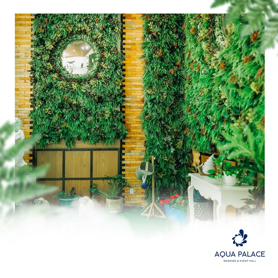 Lấy cảm hứng từ các tiệc cưới ngoài trời, tiệc cưới sân vườn – một trong những xu hướng đám cưới tại các nước châu  Âu, châu Mỹ và Nhật Bản, để thay đổi toàn bộ diện mạo Aqua Palace Sang trọng nhưng không quá cứng nhắc với những mảng kim loại chói sáng, sự sang trọng đến từ một không gian xanh mát của cây cỏ thiên nhiên.
