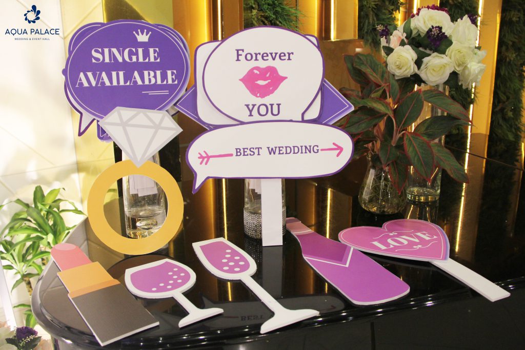 Ngay tại cửa chính, bao trùm một khoảng không gian là sắc tím mộng mơ thu hút ánh nhìn của mọi vị khách đến dự tiệc. Aqua Palace lựa chọn tone màu này bởi sự nhẹ nhàng, lãng mạn mà không kém phần quý phái như tượng trưng cho vẻ đẹp của phái nữ. Nổi bật vào ban ngày và lung linh vào ban đêm chính không chỉ diễn tả vẻ đẹp của SẠP HOA YÊU THƯƠNG mà còn là lời chúc Aqua Palace muốn gửi đến ‘’ nửa kia của thế giới’’.