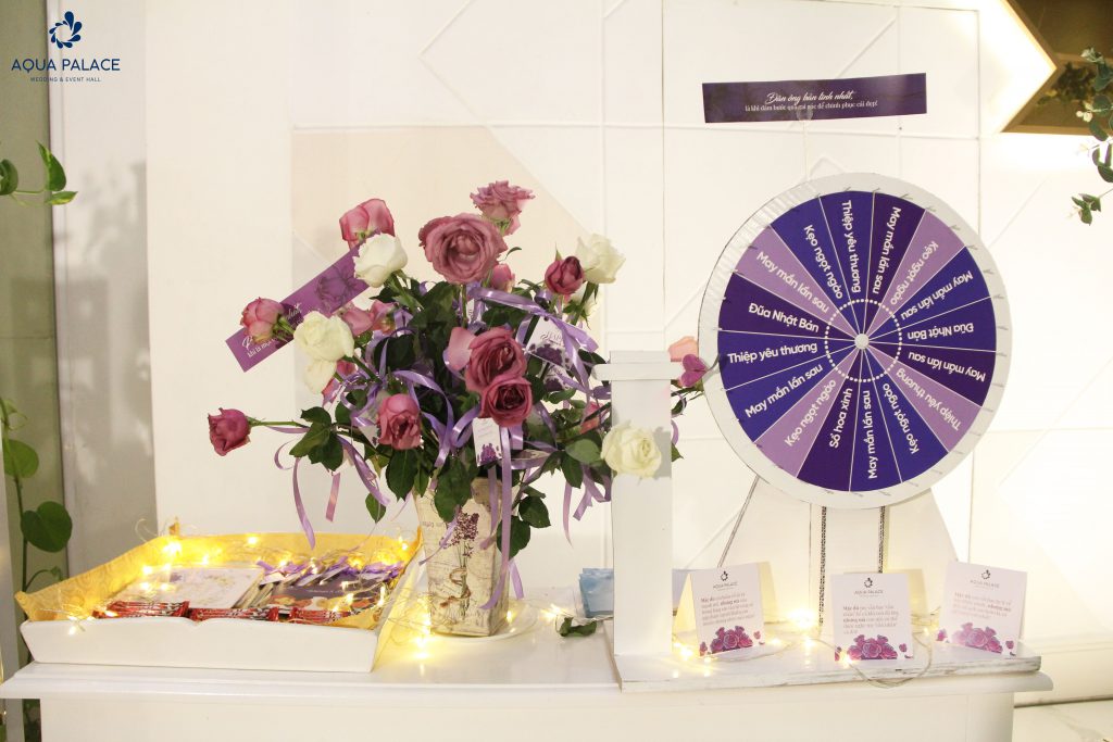 Cũng như Aqua Palace, ‘’phái mạnh’’ nhanh chóng bày tỏ yêu thương đến những người phụ nữ quan trọng của mình qua trò chơi VÒNG QUAY BẢN LĨNH. Với những món quà đáng yêu nhưng không kém phần tinh tế như: kẹo ngọt ngào, thiệp yêu thương, sổ hoa xinh và đũa Nhật Bản đã nhanh chóng chiếm lấy trái tim của các khách mời. Tại đây ‘’cánh mày râu’’ sẽ thỏa sức thể hiện để đem về những phần quà cho nửa kia.